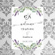 Um fundo branco chic. Decorado com flores de lavanda, flores e verde de eucalipto. Personalize e adicione suas iniciais, nomes e a data do casamento.