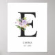 Adorável decoração de arte de parede para o berçário de bebês e letra grande 'E'. Lavanda verde pastel de aquarelas, cor púrpura, lilás. Personalize adicionando o nome do bebê. A cor de fundo pode ser alterada. Presente perfeito para recém-nascidos, chá de fraldas, aniversário....