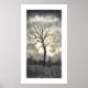 Um carvalho alto e estéril. O desenho de carvão preto e branco é feito originalmente em papel pastel amarelo pálido, de modo que uma dica de sefia passa pelas árvores de fundo. Uma cena real do meu jardim. Coordenará com meu poster ENDURING para obter mais impacto em seu quarto.