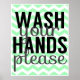 Póster Lave suas mãos - Chevron - Mint e Cinza