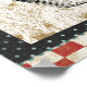 Vintage Le Poulet, francês para o frango sobre um fundo branco curado. Com um quadro preto e branco de bolinhas e uma borda vermelha e branca