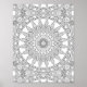 Along the outer edges, the design becomes more ornate, with symmetrical flourishes, curved accents, and angular elements that frame the central motif. The combination of crisp geometry and soft organic shapes makes this coloring page ideal for experimenting with color gradients, alternating palettes, or high-contrast themes. It offers both structure and freedom, appealing to those who enjoy detailed, nature-inspired symmetry with a refined, decorative twist.