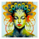 Dieses faszinierende digitale Kunstwerk in Form einer Frau würdigt die bezaubernde Schönheit von Pfauenfedern in einer reichen und strahlenden Komposition. Jede Feder ist detailliert illustriert und zeigt leuchtende Farbtöne wie Türkis, Smaragdgrün, Saphirblau, Goldgelb und Sonnenuntergangsorange. Die Federn fächern sich symmetrisch in einer mandalaähnlichen abstrakten Anordnung auf, die Eleganz und Mystik ausstrahlt. Ein sanft leuchtender Hintergrund verstärkt die Farbkontraste und lässt die Details lebendig hervortreten.