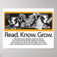 A imagem mostra as crianças lendo juntas, com tecnologia pelos lados. O poema lembra aos leitores o poder da leitura: quanto mais você lê, mais você sabe...