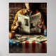 Leitor de Jornais de Desenho Pastel Este elegante trabalho de arte pintado à mão encapsula o momento sereno de um indivíduo envolvido na leitura de um jornal. A pintura é rica em detalhes, mostrando um pano de fundo rústico de tijolos que adiciona um elemento de calor e conforto. A mesa adornada com um pano de bandeira americano, lápis coloridos e quebra-cabeça de palavras cruzadas evoca um sentimento de nostalgia e sentimento patriótico. Esta peça é perfeita para adicionar caráter e profundidade a qualquer espaço vivo, oferecendo aos espectadores um vislumbre num momento silencioso e refletivo. A proporção largura/altura é 4:3.