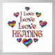 Mostre seu amor por ler com este design de corações coloridos e as palavras - Eu Amo a Leitura de Amor.