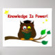 A coruja sábia original vestindo um punho e lendo em uma árvore com uma citação de um filósofo inglês, Francis Bacon, "Conhecimento é Poder!" Excelente para estudantes e amantes de livros! Ofertas únicas para o retorno à escola, graduações, eventos escolares e outras ocasiões especiais!