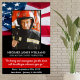 Cartaz de Funeral Memorial de Bombeiro EUA Bandeira Americana & Thin Red Line em um design moderno de bandeira americana com thin red line. Personalize este sinal de funeral de bombeiro com a foto, nome e datas do seu bombeiro. Citação: "Seja forte e corajoso, pois o Senhor estará com você onde quer que você vá." Josué 1:9 . Esta Bandeira Americana com sinal de funeral de bombeiro thin red line será um precioso souvenir para homenagear um bombeiro caído, bombeiro ou resgate de incêndio. Perfeito para serviço de memorial de funeral ou celebração de vida. DIREITOS AUTORAIS © 2020 Judy Burrows, Black Dog Art - Todos os Direitos Reservados. Lembrete Memorial de Bombeiro Cartaz de Funeral de Bombeiro