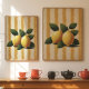 Brighten your space with this lemon wall art print inspired by the warmth and charm of Mediterranean living. Featuring two vibrant lemons with rich green leaves set against soft yellow stripes, this artwork captures the feeling of sunny kitchens, fresh ingredients, and relaxed coastal style.
