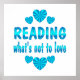 Promover a leitura com este brilhante design azul com corações e as palavras Lendo o que não é amar. Excelente para professor, estudante ou bibliotecário.