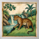 Um leopardo com simples obra de linha e uma dica de amarelo e marrom, enfatizando a elegância em um contexto artístico medieval.