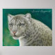 A pintura original de arte de um Leopardo da Neve em perigo de extinção, pela ilustradora científica Carolyn McFann, impressa em posters de qualidade, cartões de saudação e presentes para grandes amantes de gatos.