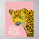 Tendy rosa fica selvagem verde poster de leopardo.