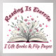 Design vibrante e colorido com um livro aberto com flores silvestres. O texto colorido diz: "Ler é exercício. Eu levanto livros e sacudir". Esse design está disponível em uma grande variedade de produtos.