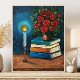 Esta impressão de uma pintura original feita à mão por Ash Stral apresenta um arranjo cativante de flores coloridas, livros antigos e o brilho suave da luz de velas. Um belo trabalho de arte que combina matizes ricos e profundos com detalhes delicados, criando um eterno e uma atmosfera encantadora, perfeita para amantes de livros, entusiastas da arte e admiradores de decoração vintage. Você pode TRANSFERIR ESTA IMAGEM para muitos produtos. E use a FERRAMENTA "EDITAR ESTA DESIGN" para personalizar a imagem com seu próprio texto ou detalhes personalizados.