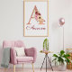 Poster Letra A Rosa Floral Dourada Monograma Nursery