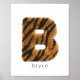 Letra B em pele de tigre felpudo laranja e preta. Personalize com seu nome ou mensagem.