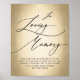Sinal de casamento em script de caligrafia preta elegante em folha de ouro falso 'Em memória amorosa, memorial para entes queridos que partiram'.
