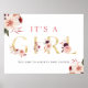 Poster Letra Dourada Floral Sinal de Chá de fraldas para