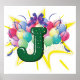 Poster Letra J de Monograma de Celebração com Balões