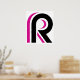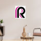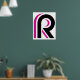 Letra maiúscula R feita em rosa e preto. Esta design parece realmente eficaz nesta Poster