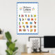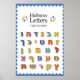 Este poster excelente ficará maravilhoso na parede da sala das crianças ou na sala de aula! O texto no topo lê Hebraico em inglês e Ha'alef Beit Ha'ivri em hebraico. O corpo do poster apresenta todo o alfabeto hebraico com padrões alegres coloridos.