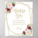 Este elegante conjunto de chá de panela apresenta um buquê burgundy e blush dentro de uma moldura geométrica dourada moderna. Este conjunto inclui cartões de enclosure, placas e suprimentos de festa personalizados, como guardanapos. Se precisar de ajuda com a personalização, incluindo alterações de cor ou texto, ou se notar que algum item está faltando, por favor não hesite em nos contatar. POR FAVOR, NOTE: Para obter ajuda em pedidos, envio, informações do produto, etc., entre em contato diretamente com o Suporte ao Cliente da Zazzle.