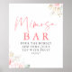 Poster elegante de letreiro de barra de Mimosa para chá de panela com flores rosas e greenery