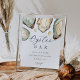 Este letreiro costeiro chique para moldura apresenta ilustrações de ostras e pérolas em aquarela em tons de creme suave e aqua, com "barra de ostras" e instruções breves em letra cursiva azul marinho clássica e letras maiúsculas. Perfeito para casamentos com tema de praia, verão ou náutico, este letreiro pode ser colocado ao lado da sua barra de frutos do mar crus para um toque chique personalizado.