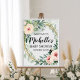 Este encantador sinal de boas-vindas define o tom perfeito para a sua celebração especial, envolvendo-a em uma atmosfera orgânica e serena. A exuberante folhagem em aquarela fornece um belo e natural pano de fundo para destacar a ocasião alegre e dar as boas-vindas aos entes queridos. Quer seja exibido na entrada ou colocado de forma proeminente, este sinal causará uma primeira impressão adorável e dará início ao seu chá de bebê com estilo. Sinal de boas-vindas de chá de bebê menina com folhagem em aquarela