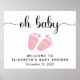 Letreiro de boas-vindas fofo para o chá de bebê da sua menina com "oh baby" em uma linda letra com floreios e um efeito de aquarela rosa pastel de pés de bebê. Personalize com seu nome e data do chá.