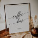Esta elegante placa de café com caligrafia preta é perfeita para um casamento simples. O design neutro apresenta um pôster minimalista decorado com uma tipografia romântica e caprichosa.