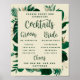 Folhagem Tropical Folhas e Verdura Tendência Sinal de Coquetéis Especiais para Bebidas no Bar da Recepção de Casamento Personalizado - Marcador Tendência com Letras em Script Escovado. Uma maneira divertida de agradecer aos seus convidados por comparecerem ao seu casamento! Em uma paleta de cores ousadas de verdes ricos, esmeralda e dourado. Este design é perfeito para um casamento na praia, destino ou verão. Com sentimentos de um paraíso tropical, este design de folhas de palmeira vívidas complementará o local do seu casamento na praia ou tropical. Em um esquema de cores verde escuro, azul-esverdeado, esmeralda, folhagem e dourado - Sinal de Menu do Bar de Recepção de Casamento Personalizado!