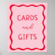 Letreiro de cartões e presentes ondulados rosa e vermelho retrô