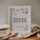 Os letreiros de cabine de fotos são caracterizados por um estilo boho com arte floral e cores neutras terrosas e bege.