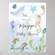 Poster letreiro de chá de bebê tema oceano aquarela