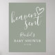 Um letreiro de chuvade bebê moderno minimalista com um coração desenhado à mão fofo e tipografia estilosa em um fundo verde sage. Projetado por Thisisnotme©