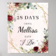 Letreiro de contagem regressiva em moldura dourada floral Boho burgundy para festa de noivado, entre em contato para itens combinados ou para personalização, Rosas Rosadas ©