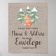 Este letreiro de "Endereçar um Envelope" de raposa da floresta de inverno é perfeito para um chá de bebê rústico. O design neutro em termos de gênero apresenta animais fofos em uma cena de floresta de inverno. Peça aos seus convidados que enderecem um envelope de cartão de agradecimento a si mesmos para poupar o convidado de honra ocupado de escrever todos os envelopes.