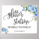 Poster Letreiro de Estação Glitter azul boho chic Chá de