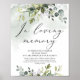 Poster Letreiro de folhagem verde aquarela em memória amo