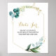 Este letreiro de jarro de data de eucalipto verde e dourado vintage é perfeito para um casamento simples. O design apresenta folhas e flores verdes, douradas e azuis pintadas à mão em aquarela, elegantemente arranjadas em buquês e molduras geométricas. Cartões de Ideias para Noite de Data são vendidos separadamente.