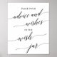 Este elegante letreiro de jarra de desejos em caligrafia preta é perfeito para um casamento simples. O design neutro apresenta um pôster minimalista decorado com uma tipografia romântica e caprichosa. O letreiro diz "coloque seus conselhos e desejos na jarra de desejos".