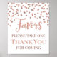 Letreiro de lembrancinhas para churras de bebê, chá de noiva, festa de aniversário ou casamento em um padrão de confete dourado rosa.