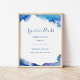Letreiro de menu de bebidas de casamento personalizado com uma borda abstrata em aquarela azul para combinar com nossa coleção Sapphire Tide. Personalize-o com os detalhes do seu menu de bebidas com assinatura personalizada. Use as ferramentas de design para editar as fontes e cores ou envie suas próprias fotos para criar um letreiro de boas-vindas de casamento único.