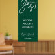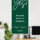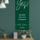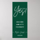 Sinal de festa de Engajamento caligráfico simples com letras 'Ela disse Sim!'. Diferentes opções de cores de fundo disponíveis. Nomes e Data do evento são editáveis.