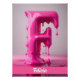 Letter F, Monogram of initial F. Capital Letter. Hot pink, dripping goo, floating. This image features a letter “F" in a vibrant shade of pink, with a visual effect that simulates paint or liquid melting. The letter appears to be made of dripping goo, creating an interesting play of textures and shapes. The background is light pink, which further highlights the letter and its three-dimensional effect.