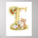 Poster Letter T Gold Spring Nature Monogram Kitten Kids