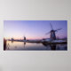 Poster impressão dos moinhos de vento de Kinderdijk ao longo do canal durante um nascer roxo do sol no inverno na Holanda.