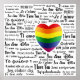 Design com temas LGBT, com um coração arco-íris cercado por textos "Eu te amo" em diferentes línguas